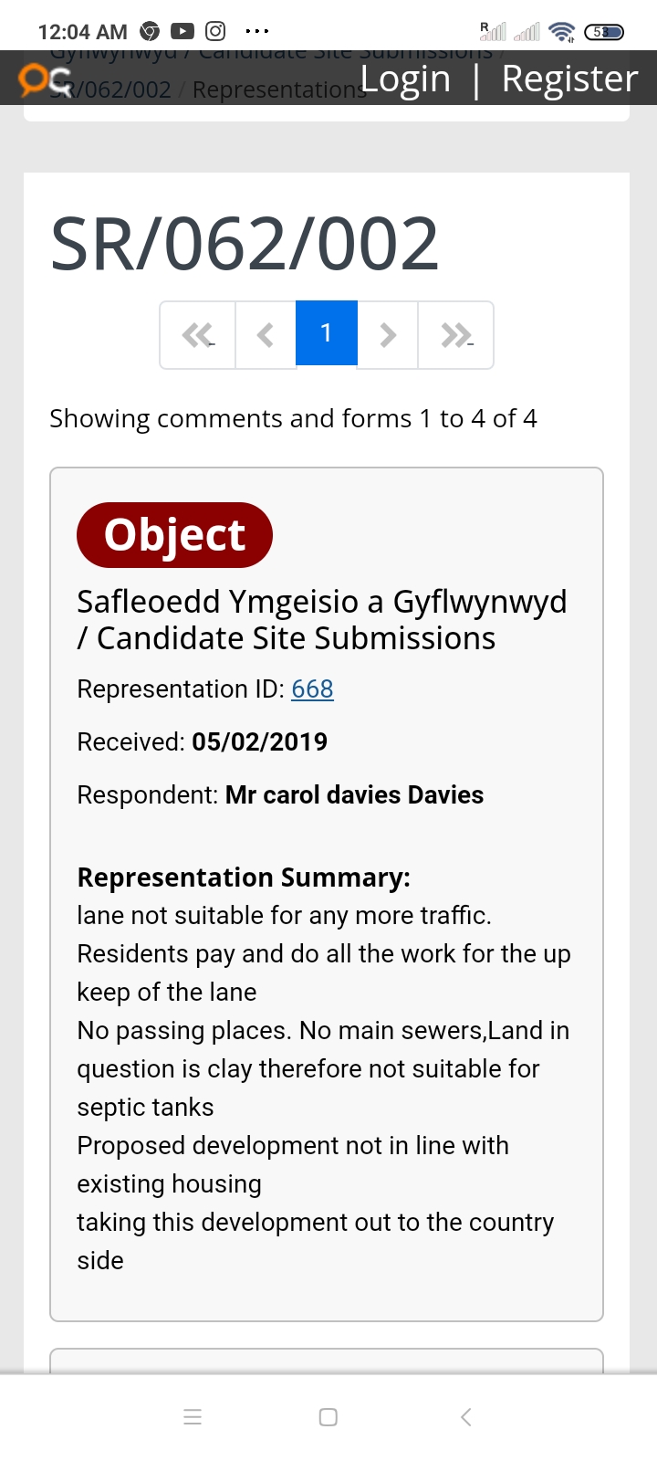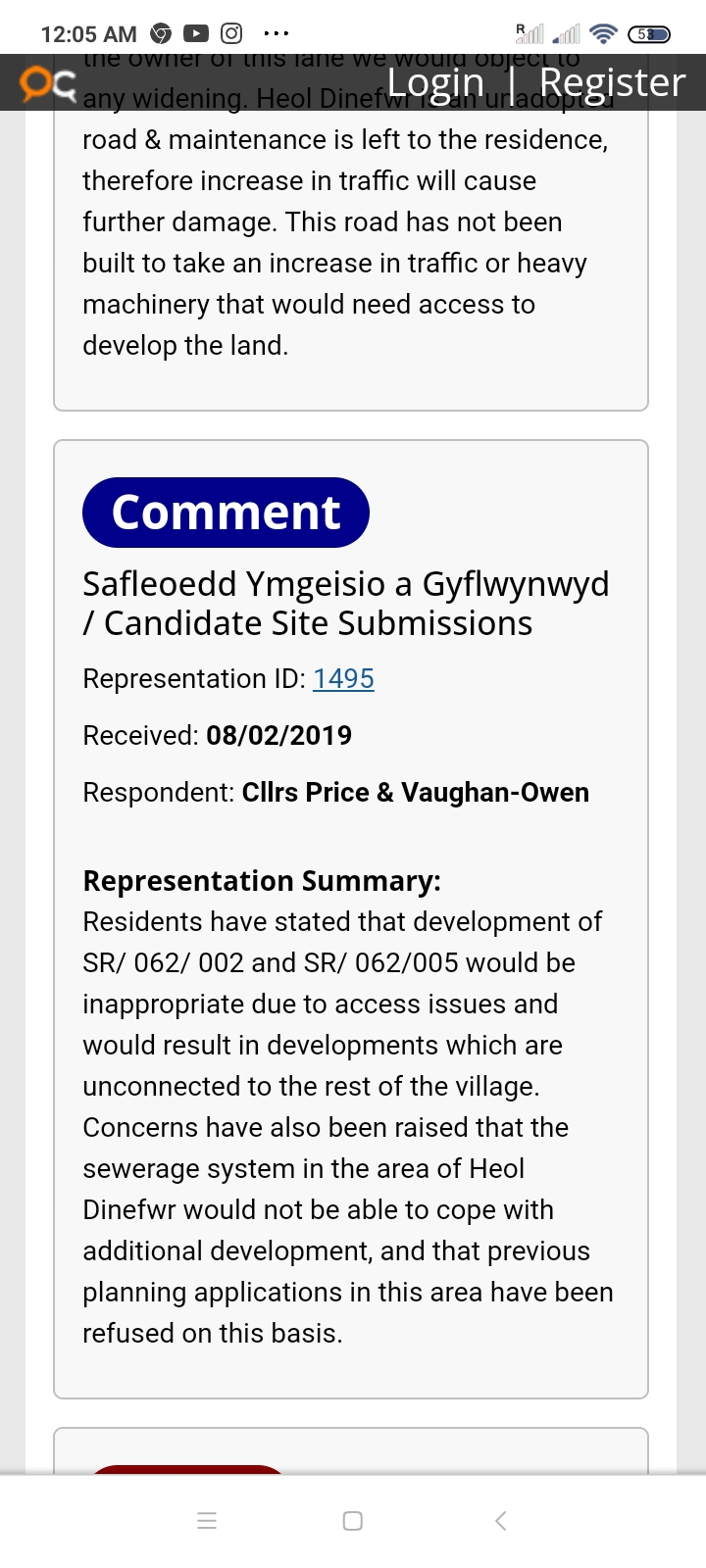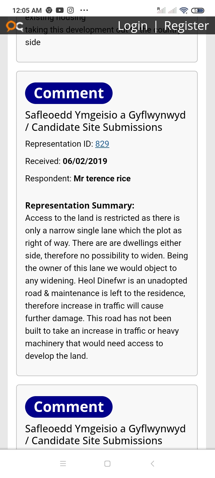 LDP does not meet what is required in Blaenau. There is no scope for any new builds in the area at all. The Canditate Site CA 0080 SR009/001 is said to be divorced from Blaenau, but is actually inside where the sign says welcome to Blaenau. We were hoping to build on our land so that my wife could be close to her elderly parents who live just across the road at 161 Penygroes Road with there health deteriorating as time goes on. The family has owned the land for the last twenty years and are looking for a single dwelling, with the possibility of maybe more properties being built in the future, such as Affordable housing to enhance Blaenau .