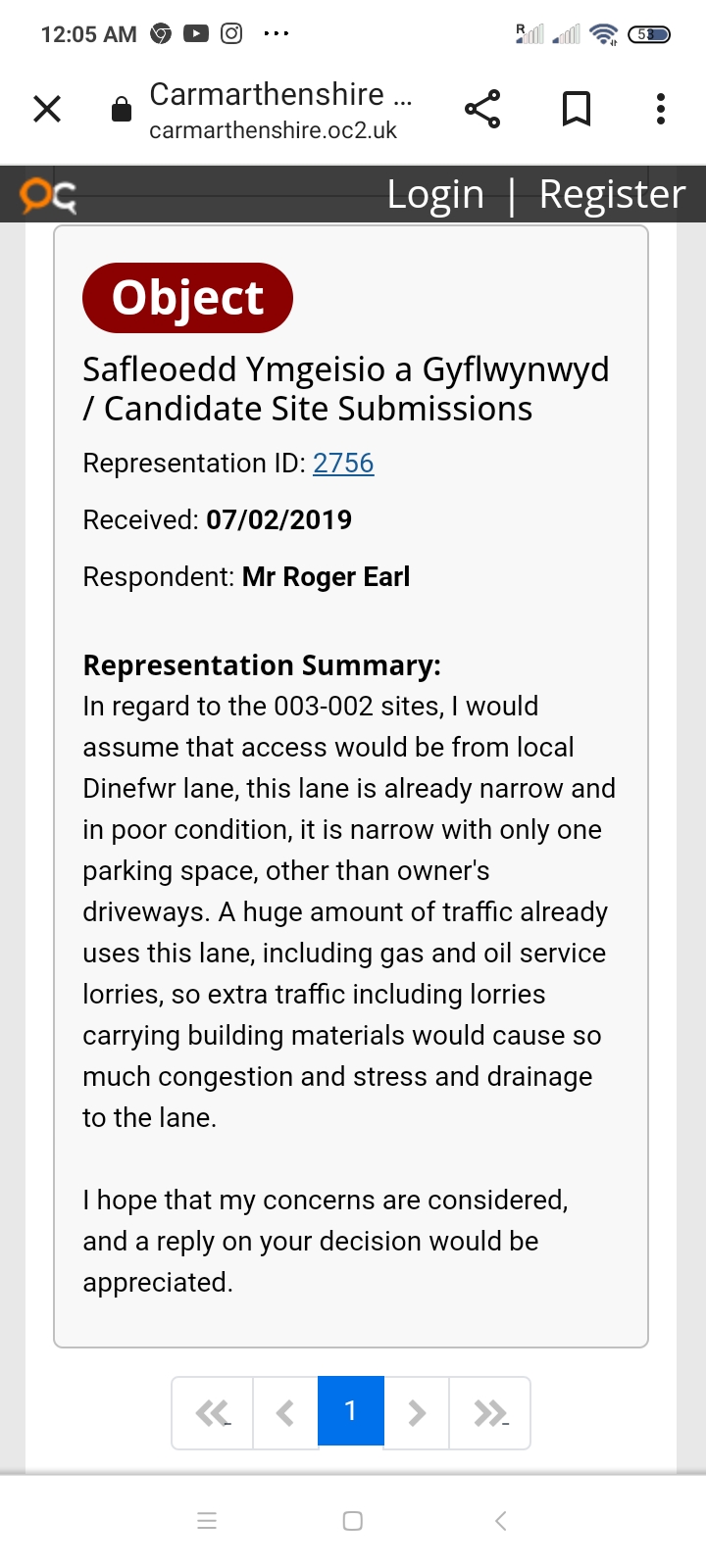 I do not have your reference, as this site is not currently included in the LDP. Land at Heol Mafon, Llanfihangel-ar-Arth, Carmarthenshire, SA39 9LD is the location. I live next door to this site. I am also a director of a company that owns a solar farm next to this possible proposed site. I am sending this representation in support of excluding the site (as it is not currently in the LDP) in case Mr Evans (or the current owner of the site) sends a representation to include the site during this consultation period.